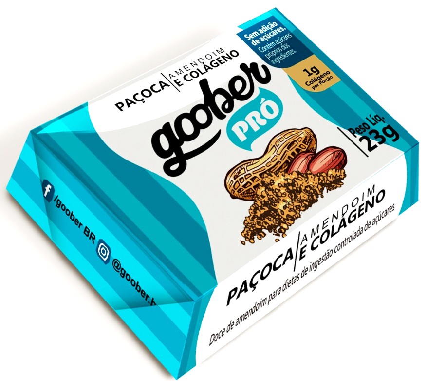 Paçocas Goober com sabores diferenciados, provenientes de ingredientes naturais, ricos em vitaminas, fibras, gorduras "do bem", como Ômega 6 e 9, e muitos outros nutrientes.