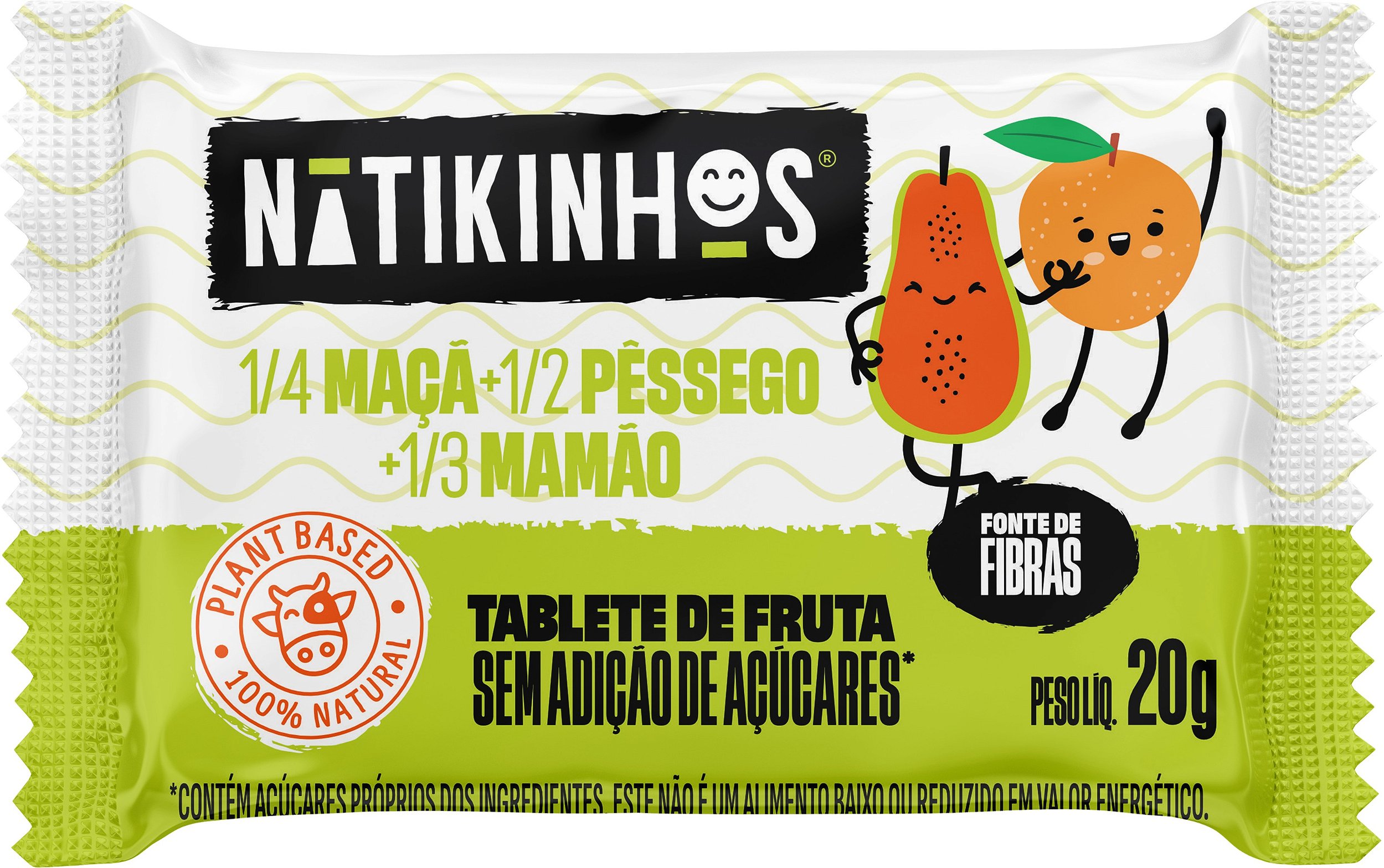 Os tabletes Nátikinhos compostos apenas de frutas são grandes aliados dos pais na alimentação das crianças. Uma opção natural e ideal para o lanchinho gostoso e saudável das crianças: deliciosos, práticos e fáceis de transportar. Não amassam, não estragam com facilidade, não fazem sujeira e mantêm as propriedades e o sabor autêntico da fruta. Possuem uma textura macia e suculenta. São livres de leite, lactose e glúten, fonte de fibras, sem conservantes, corantes e aditivos químicos.