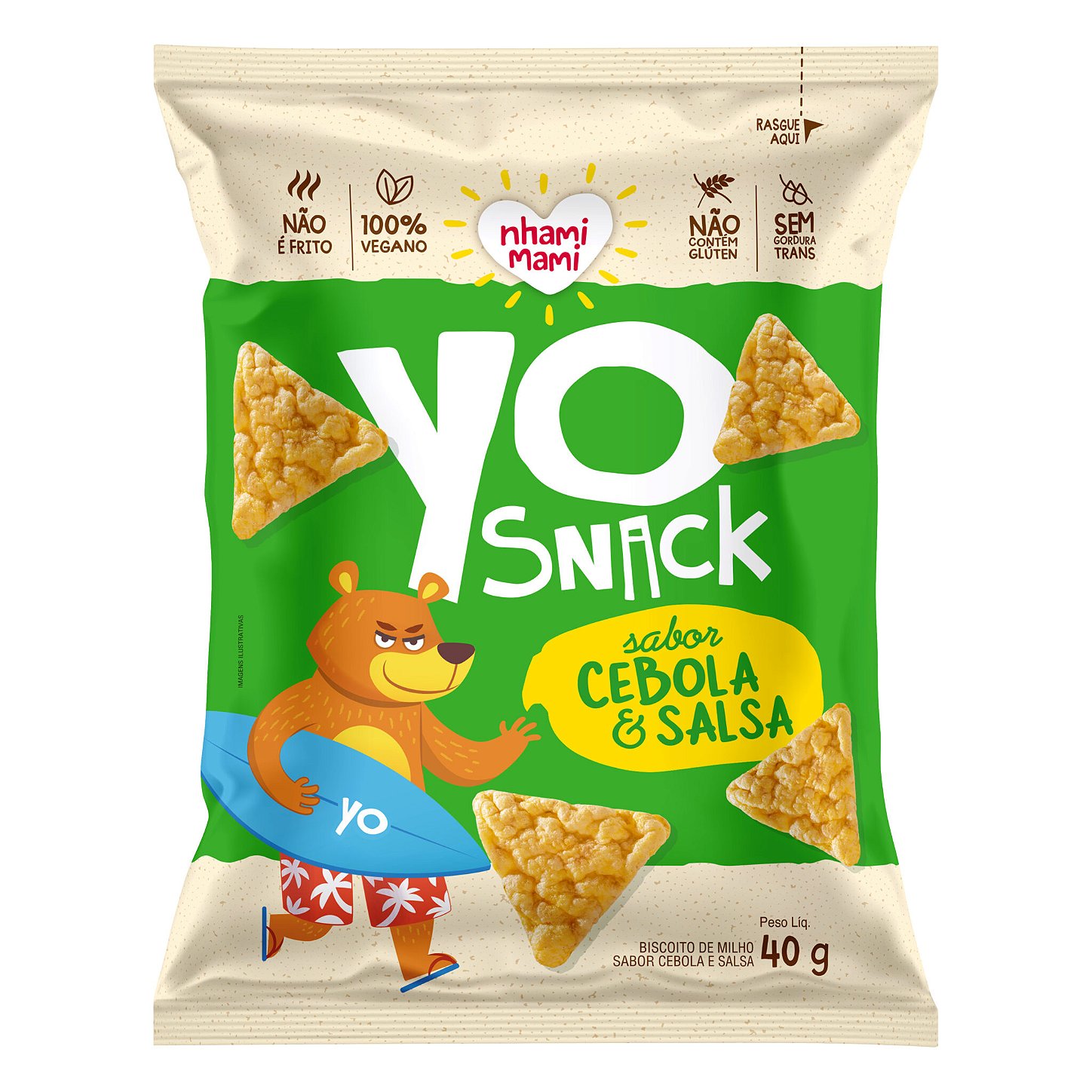 O Yo Snack da Nhami Mami traz um biscoito leve e saboroso com gosto único de cebola e salsa, desenvolvido especialmente para crianças em fase de transição para a pré adolescência. Ideal para quem busca um lanche prático e gostoso.